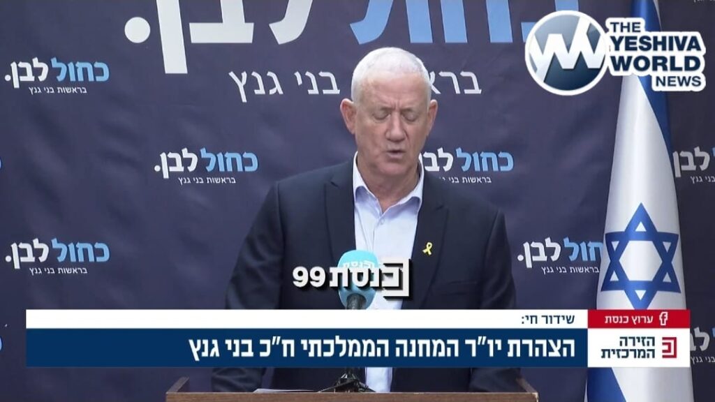 Blue and White chairman Benny Gantz on Wednesday condemned a massive chareidi anti-draft protest planned for Thursday in Jerusalem, calling the demonstration “dangerous for Israeli society — and dangerous for the chareidi community.”