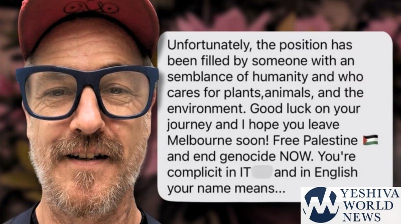 An Israeli woman seeking work in Melbourne says she was rejected from a job and accused of complicity in “genocide” by the business’s co-owner. The 24-year-old woman applied for a position at The Garden of Eden plant nursery in the suburb of Albert Park. Shortly after submitting her application, she received a text message from co-owner Brett Dahan, which she later shared with the Herald Sun.