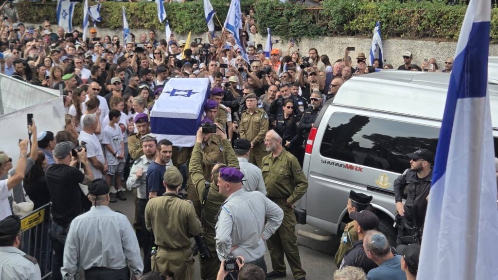 The levaya began at 10:00 a.m. at the military cemetery in Kfar Saba. IDF Chief of Staff Eyal Zamir and Givati Commander Col. Netanel Shamaka spoke and tearful hespedim were then delivered by his parents, siblings, former kallah Eden Sarusi. Family friend and popular Israeli singer Idan Amedi then spoke and sang the song Nigmar.