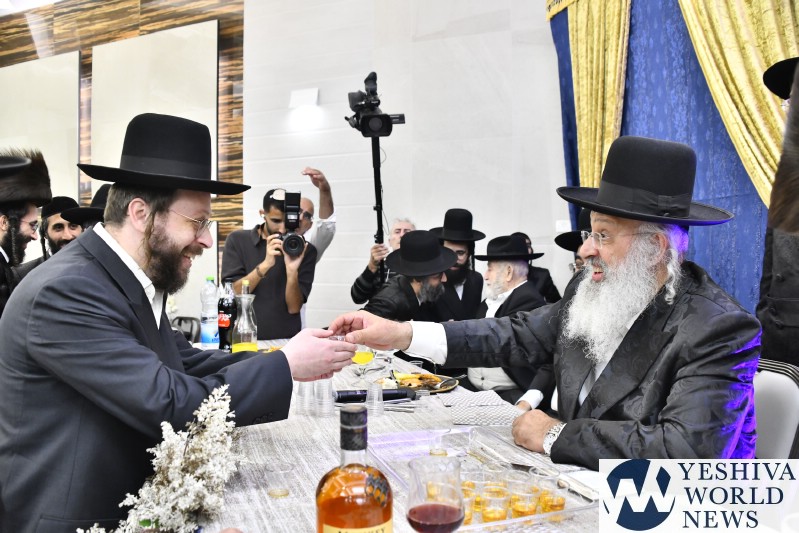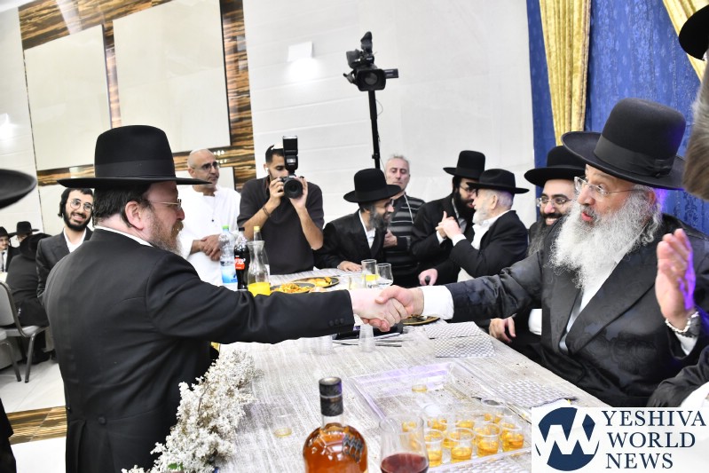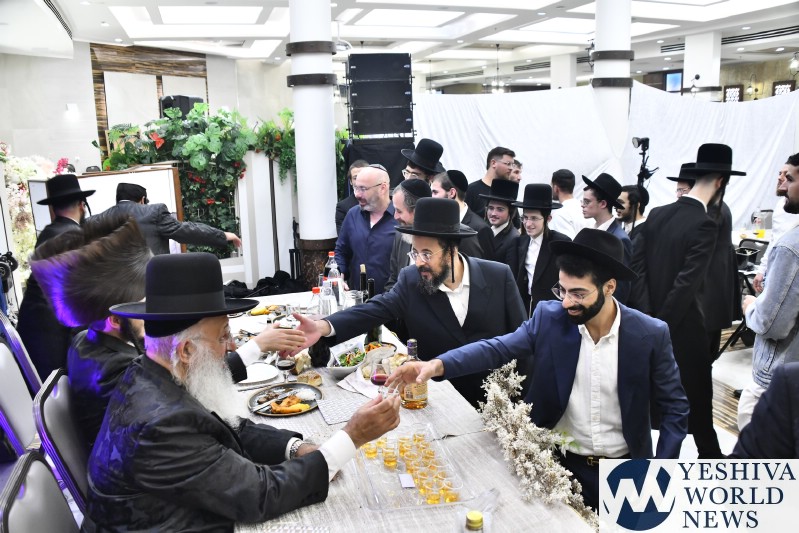 The wedding celebration was held for the grandson of HaRav Uziah Alkoret, President of the Breslov Chayei Olam institutions. The chassan, Meir, is among the outstanding talmidim of Yeshivas Slabodka.