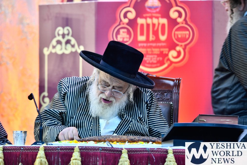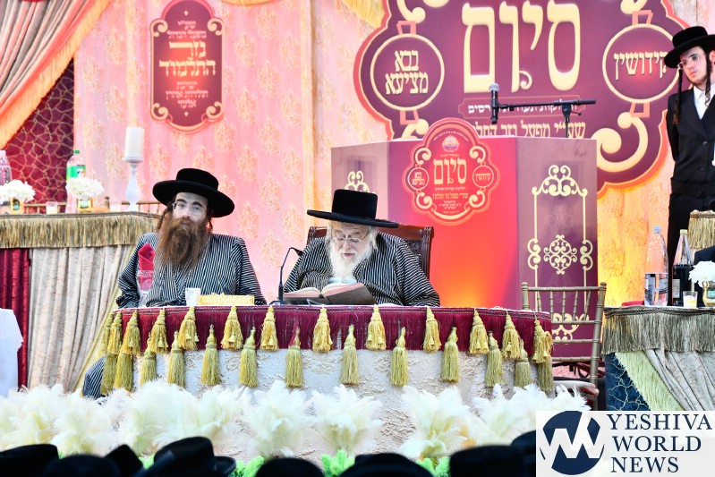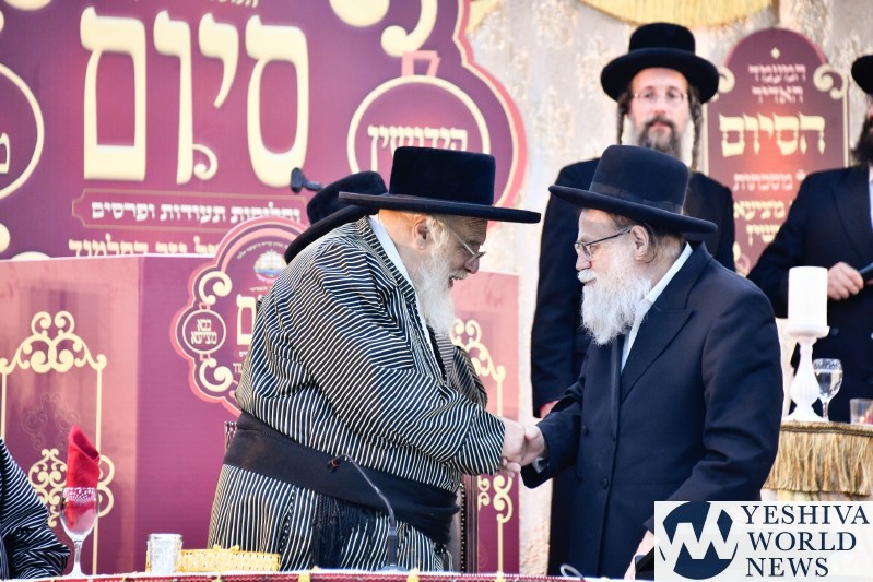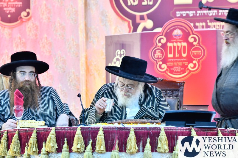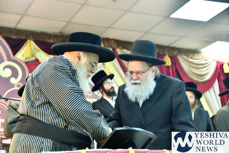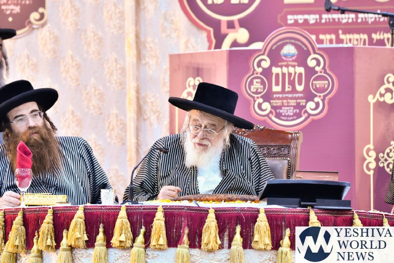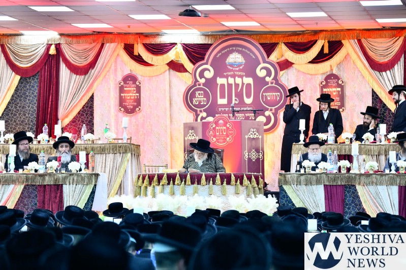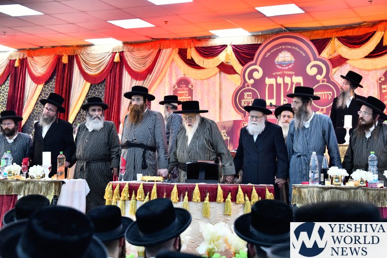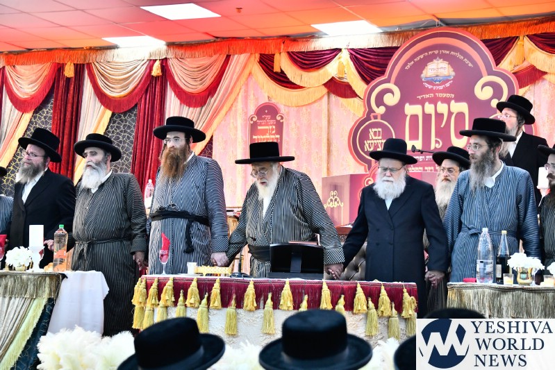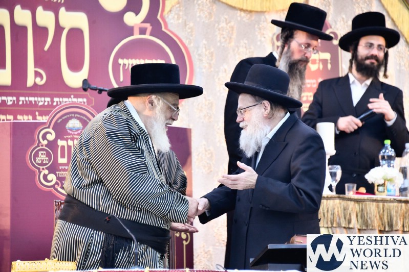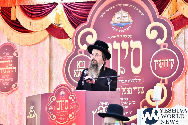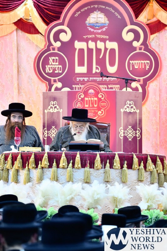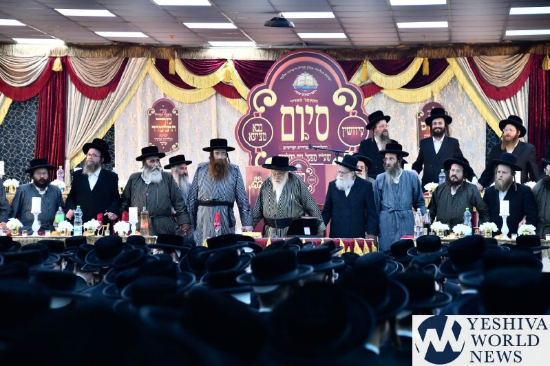 A large and uplifting event took place in the Toldos Aharon Yeshiva in Elad, led by the Rebbe himself. The joyous gathering honored the bochurim who completed and were tested on Masechta Kiddushin and Masechta Bava Metzia.