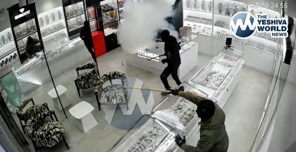 A gang of at least four masked men armed with crowbars attempted to rob a newly opened jewelry store in Ofakim on Tuesday, but were forced to flee empty-handed after an employee triggered a defensive gas and smoke system that blinded the intruders.