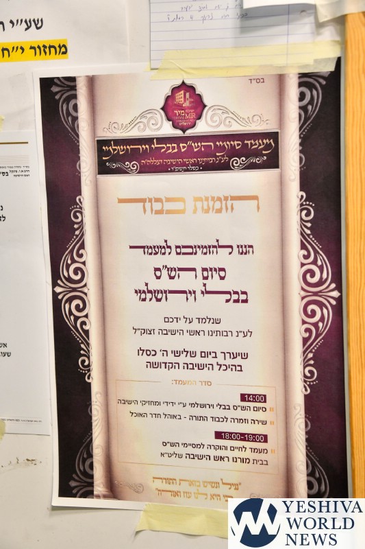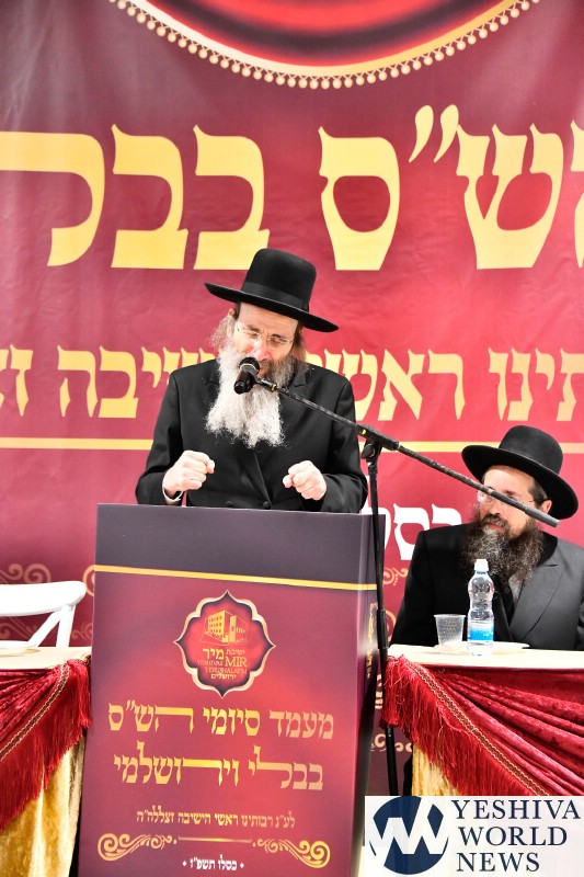 A remarkable gathering took place on Tuesday at Yeshivas Mir in Yerushalayim, where thousands of talmidim celebrated the completion Talmud Bavli and Yerushalmi learned l’ilui nishmas the late Roshei Yeshiva Z”tl, including Hagaon HaRav Nosson Tzvi Finkel Z”tl.