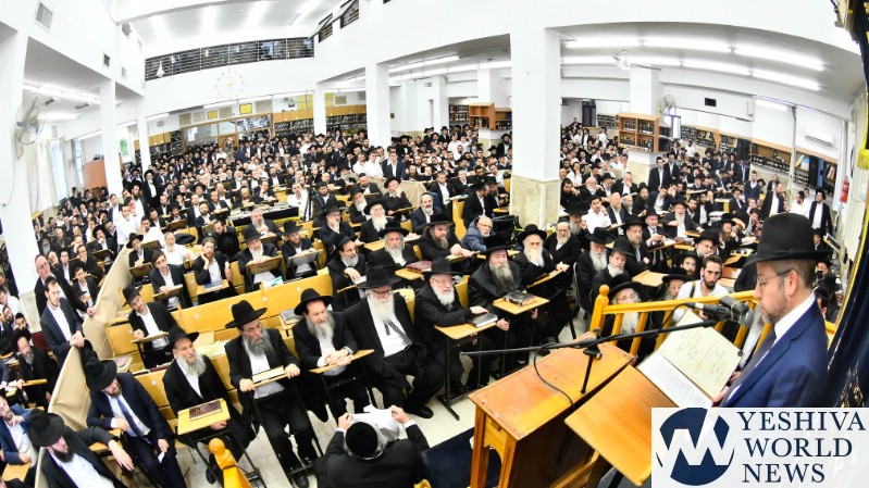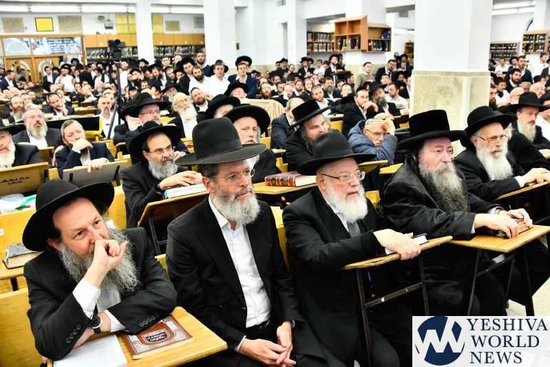 The event was attended by the Roshei HaYeshiva, together with thousands of current talmidim and alumni. Also present were hundreds of participants of the Yeshiva’s annual Yarchei Kallah program who are currently filling the beis medrash to capacity.