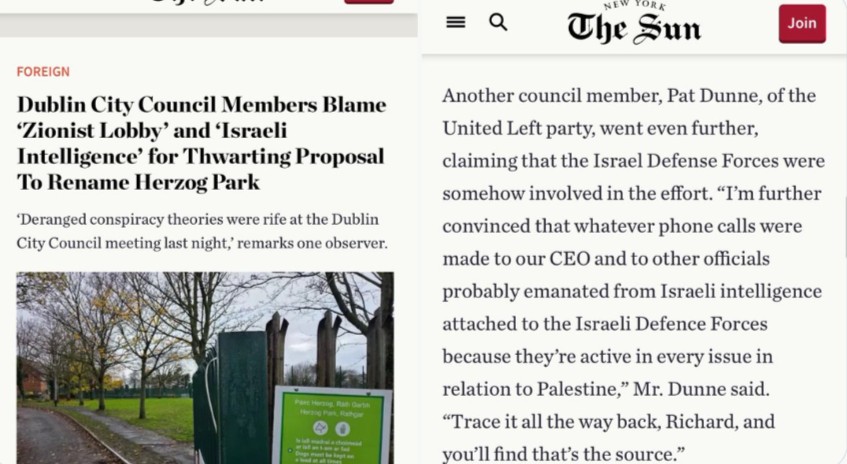 The rhetoric at a meeting of the Dublin city council following the revocation of its decision to rename Herzog Park due to an international outcry was rife with feverish hatred and antisemitic tropes.