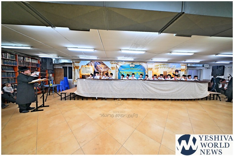 A heartfelt and uplifting celebration took place this week at the Vizhnitz Talmud Torah in Ashdod, where fifth-grade students marked their formal entry into the world of Gemara learning. The event, held under the banner of the Pompadesia Yeshiva, combined a public oral exam, a dramatic presentation depicting the historical yeshiva, and inspiring talks on the fusion of Torah and Chassidus.