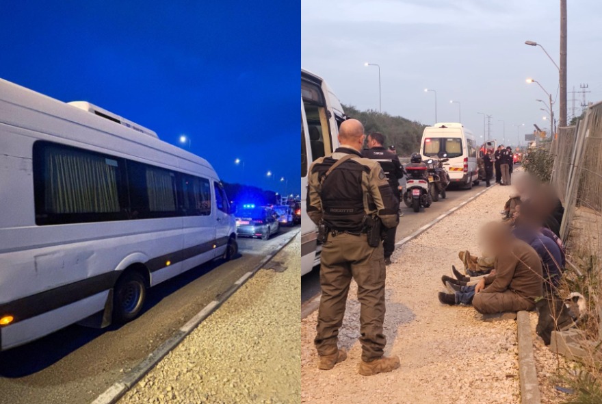 An operation by the Bnei Brak–Ramat Gan police station led to the arrest of 60 illegal Palestinians who were being transported on minibuses on Highway 4.
