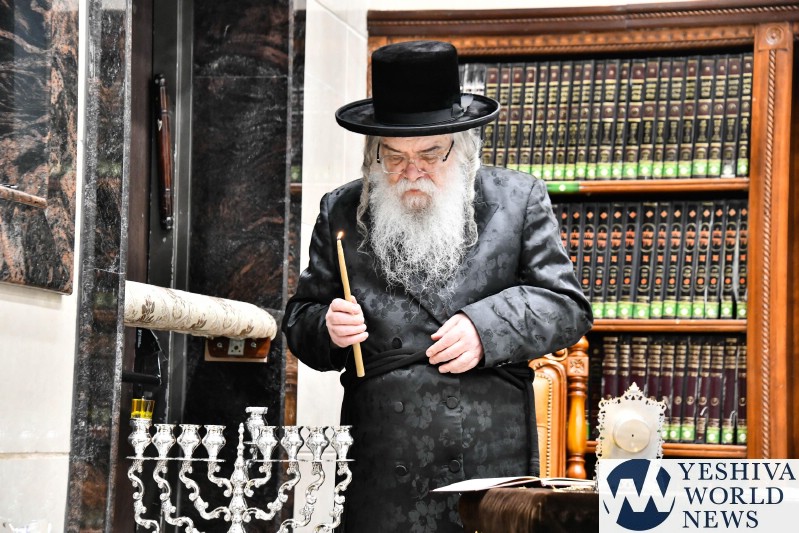 PHOTOS: The Dorger Rebbe Lighting Menorah [Via Shuki Lerer For YWN]