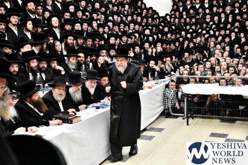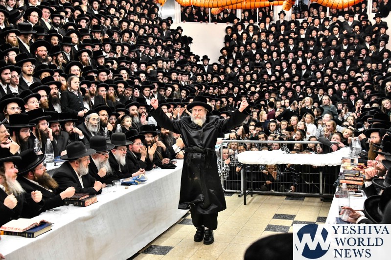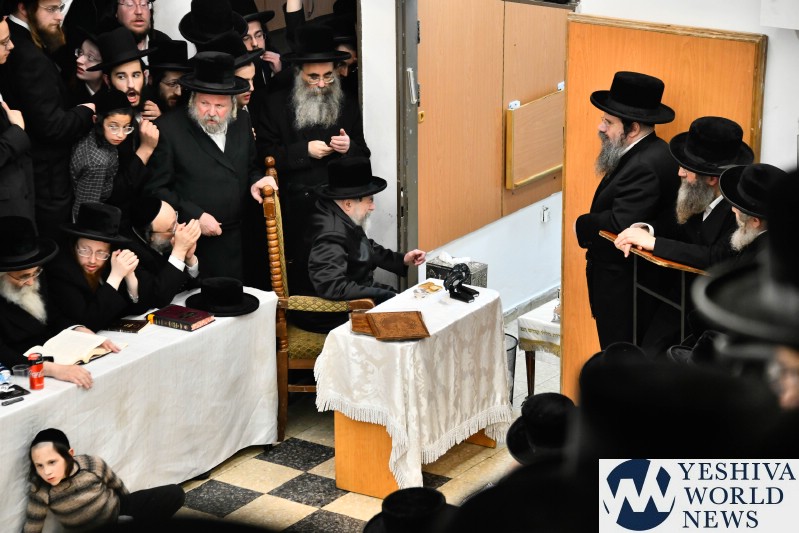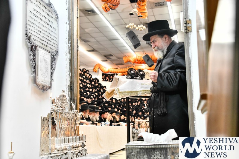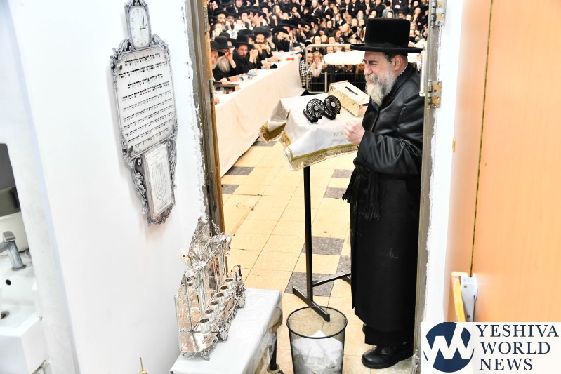 PHOTOS: The Rachmastrivka Rebbe Lighting Menorah [Via Shuki Lerer For YWN]