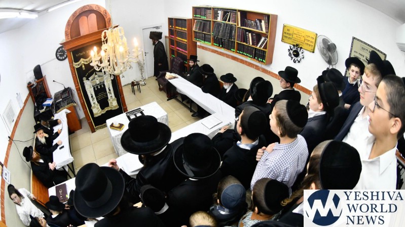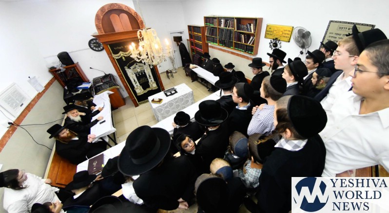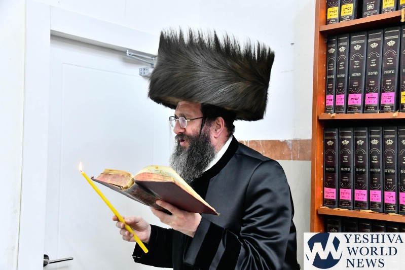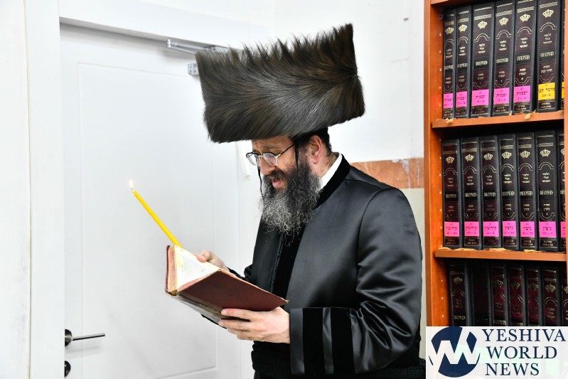 PHOTOS: The Spinka Ramat-Aharon Rebbe Lighting Menorah [Via Shuki Lerer For YWN]
