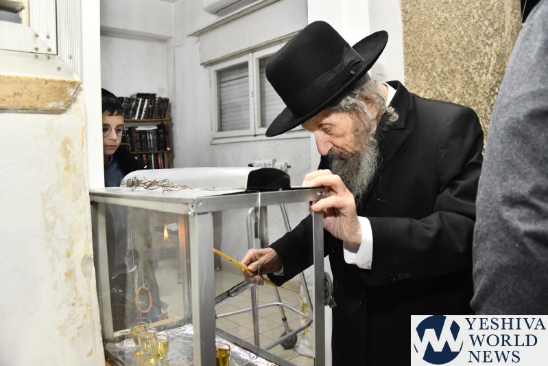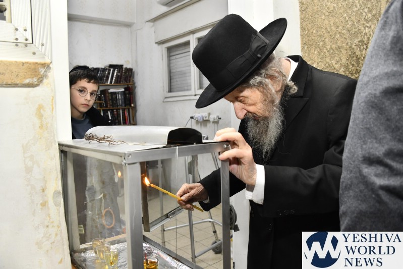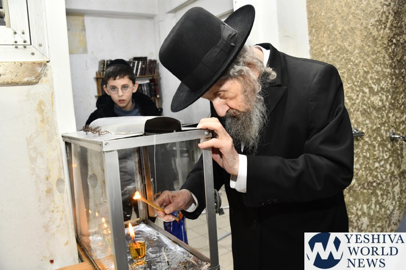 PHOTOS: Hagaon HaRav Dov Landau Lighting Menorah [Via Shuki Lerer For YWN]