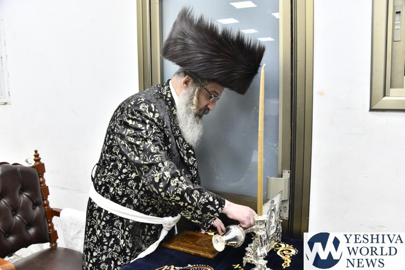 PHOTOS: The Zutchka-Amsana Rebbe Lighting Menorah [Via Shuki Lerer For YWN]