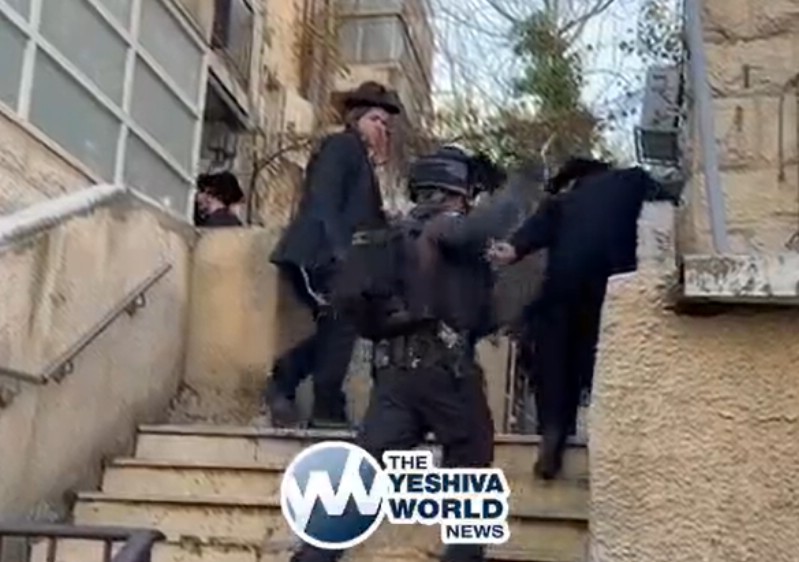The footage, which has circulated widely in recent days, appears to show an armored officer chasing and repeatedly beating Chareidi youths with a baton, forcing them up a staircase and into a building.