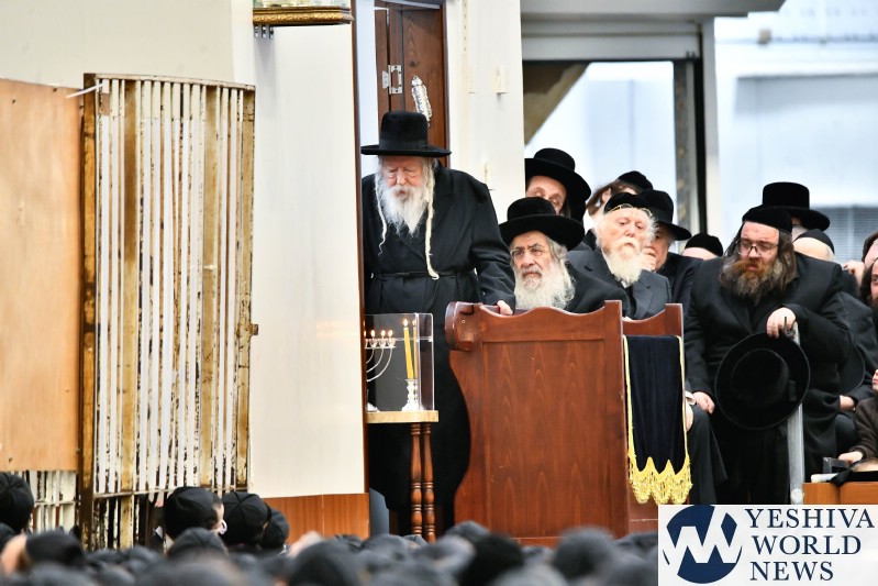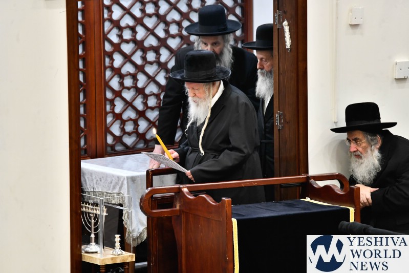 PHOTOS: The Gerrer Rebbe Lighting Menorah [Via Shuki Lerer For YWN]