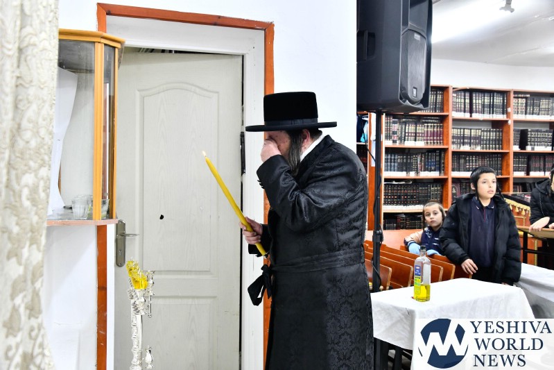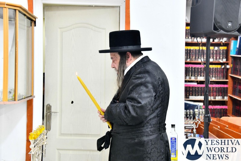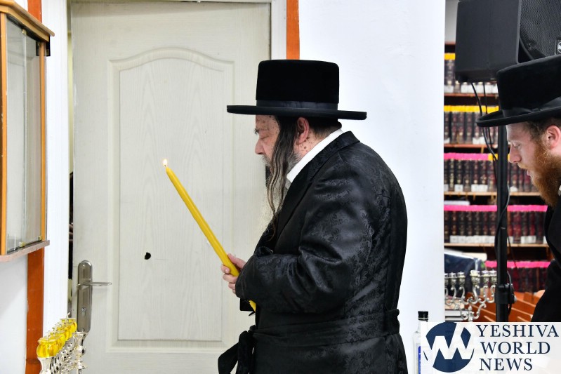 PHOTOS: The Zvhiller Rebbe Lighting Menorah [Via Shuki Lerer For YWN]