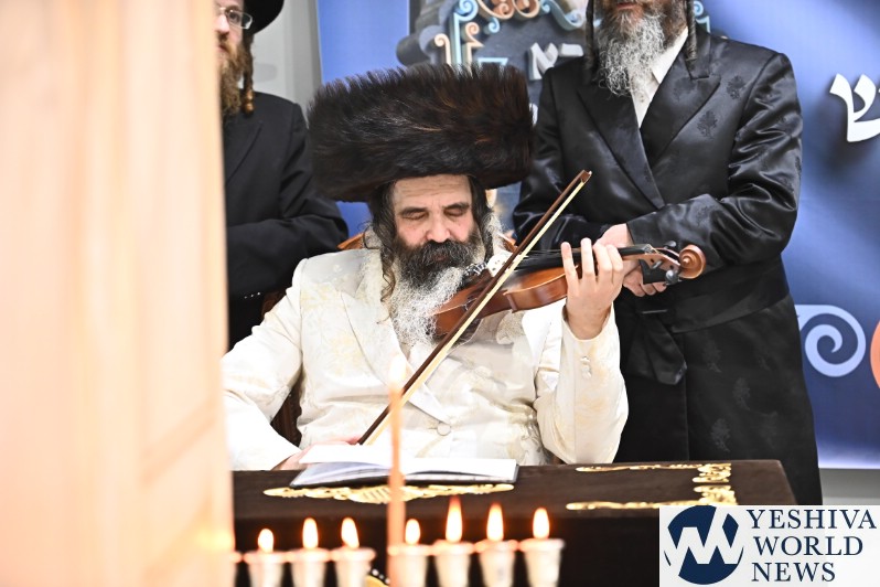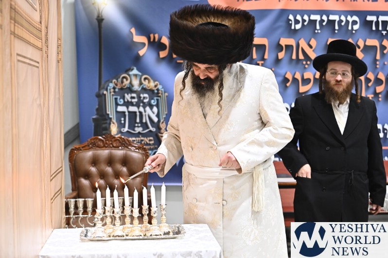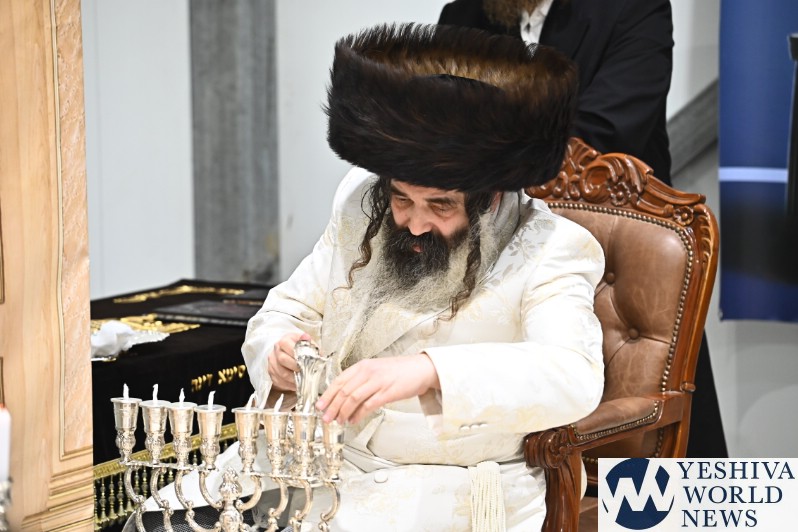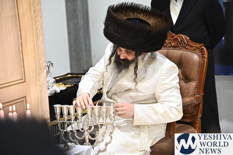 PHOTOS: The Zutchka Rebbe Lighting Menorah [Via Shuki Lerer For YWN]