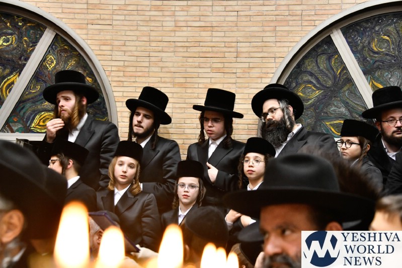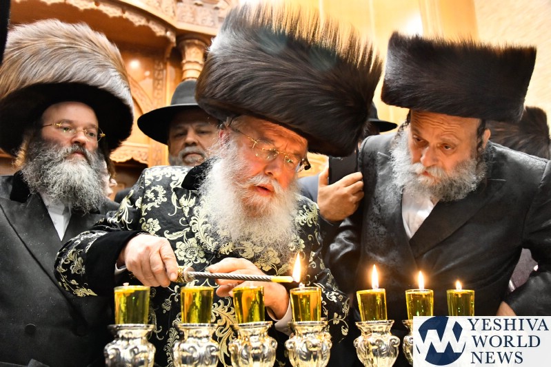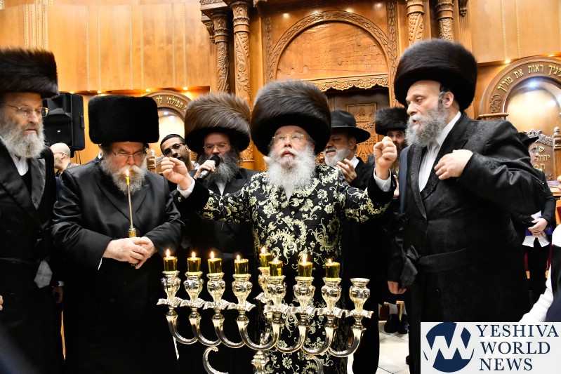 PHOTOS: The Mishkoltz Rebbe Lighting Menorah [Via Shuki Lerer For YWN]