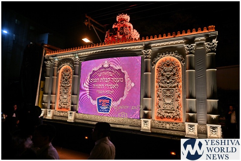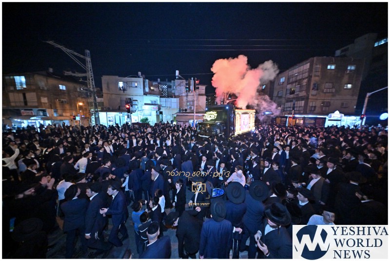 The procession, held under the resonant banner “Havu Godel L’Giborei HaUma,” was accompanied by music and instruments and led by renowned baal menagen R’ Bentzi Stein. According to organizers, the Torah prisoners arrived in ceremonial vehicles at 7:00 p.m., with the procession traveling from Yismach Moshe Street toward Chazon Ish Street, culminating in a central reception held in the heart of the neighborhood.