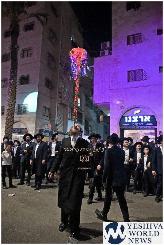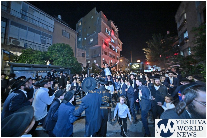 The powerful event was accompanied by spirited dancing, a “Hachnosas Sefer Torah vehicle”, and the singing of “Ashreichem Talmidei Chachamim.” Participants escorted the released bochurim along the neighborhood’s main thoroughfare, expressing admiration for their steadfastness and sacrifice, praising the young men who “merited to sit in prison for their desire to safeguard our religion.”