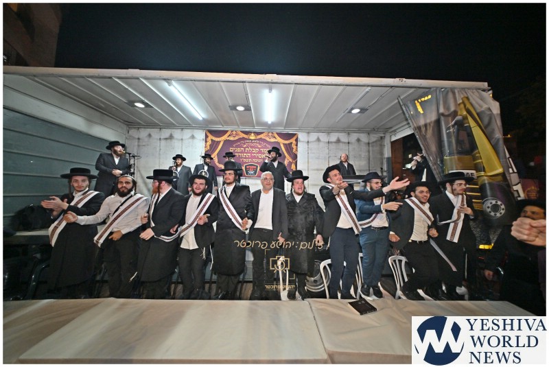 The massive crowd joined together in song and celebration, filling the streets with voices of joy and gratitude as they honored the “Asirei Olam HaTorah.”
