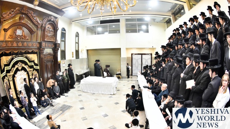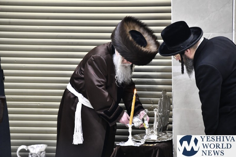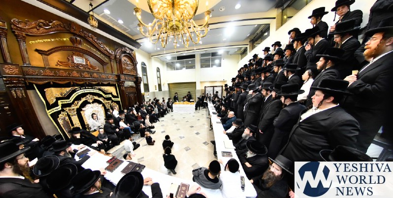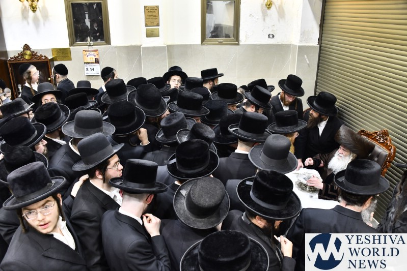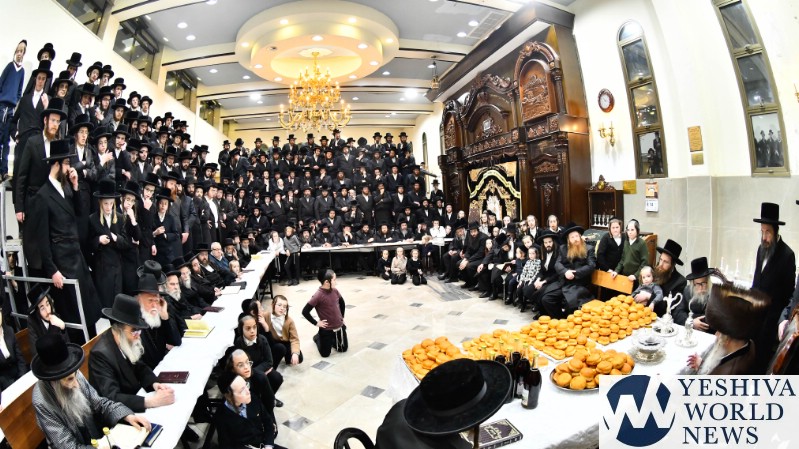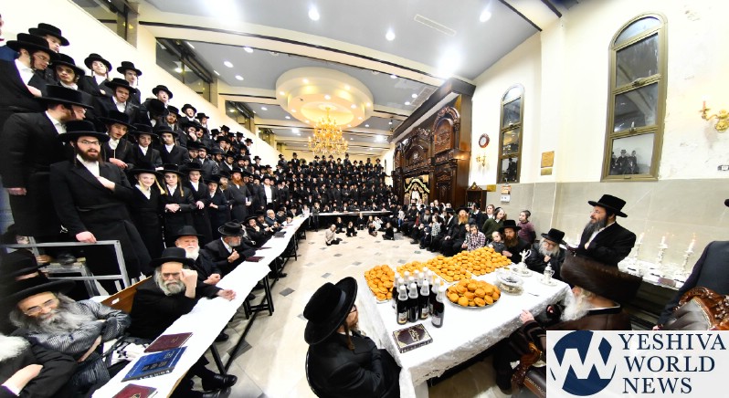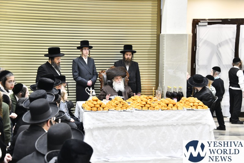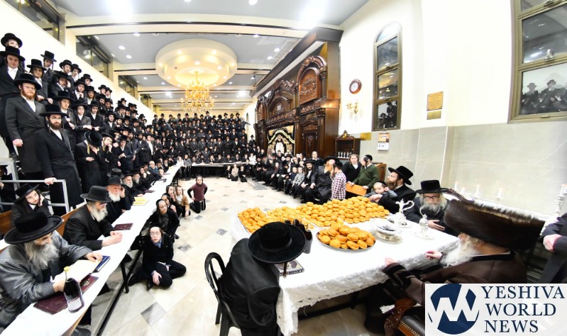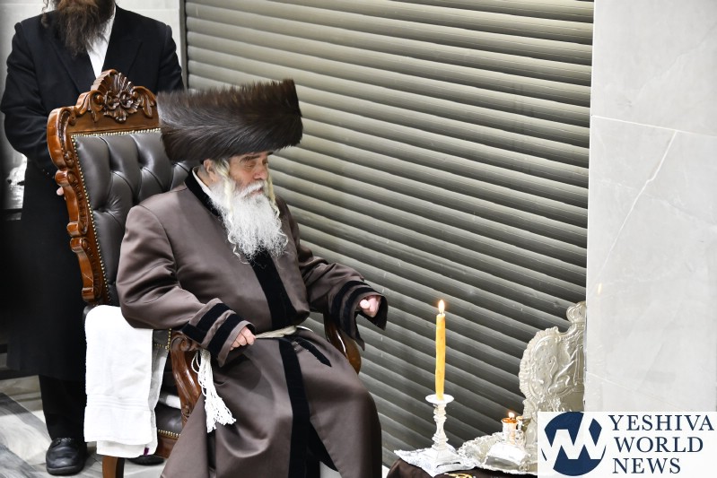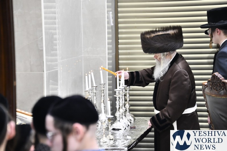 PHOTOS: The Kretchnifer Rebbe By His Chanukah Tish [Via Shuki Lerer For YWN]