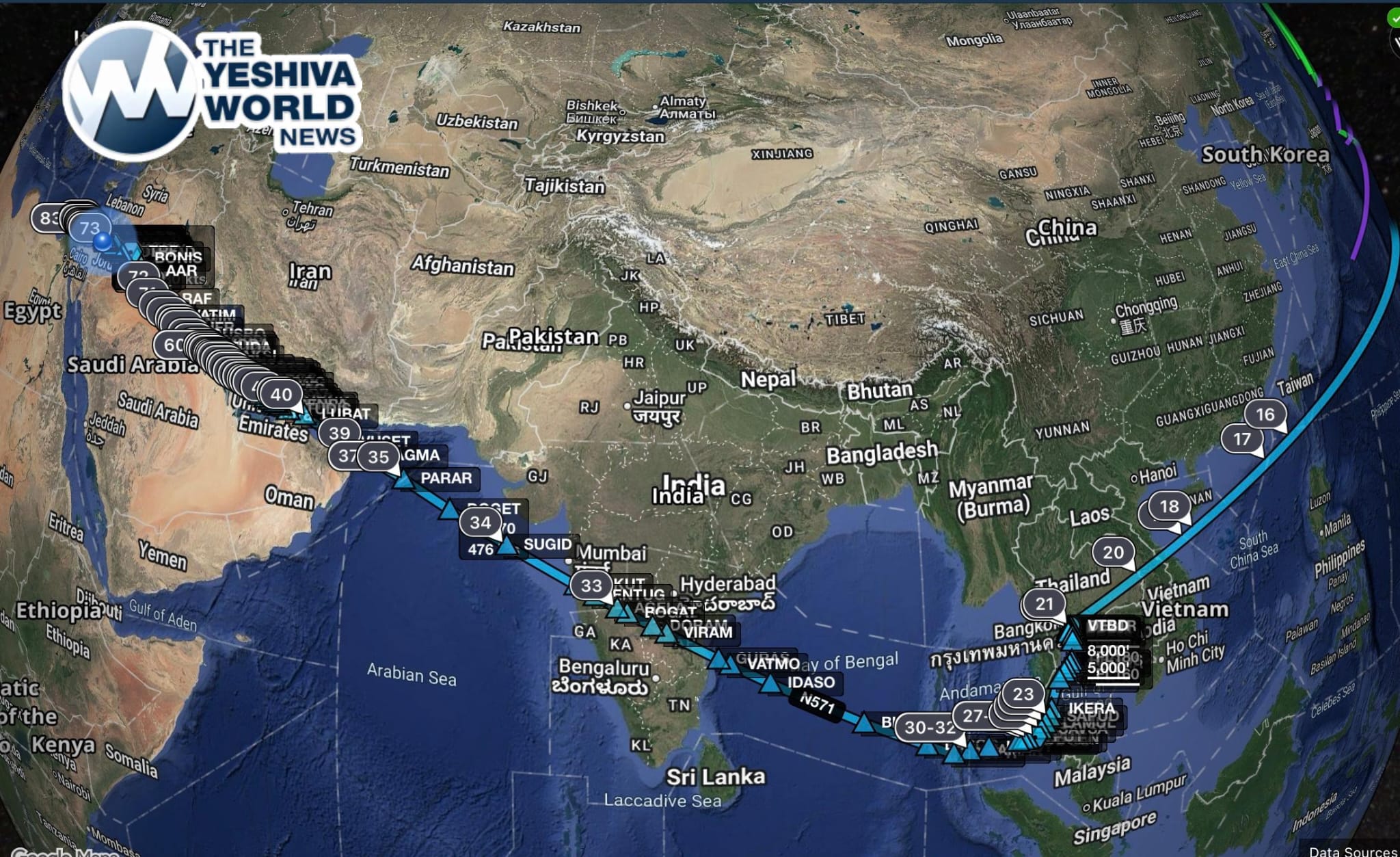 The mission involved an extended, multi-continent route. The aircraft first traveled approximately 40 hours from New York to Honolulu and onward to Australia. After the patient was stabilized and loaded in Sydney, the return flight proceeded from Australia to Bangkok and then to Israel.