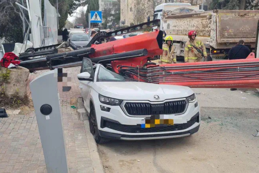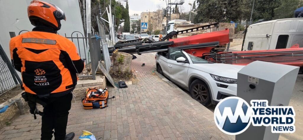 MDA emergency medical technician Shlomo Tadegi said, “The woman was lying on the sidewalk unconscious, with a severe head injury. We saw that she had been injured by a crane truck that overturned. We provided her with medical treatment, loaded her into a mobile intensive care unit, and evacuated her in an MDA mobile intensive care unit to the hospital in serious and unstable condition.”