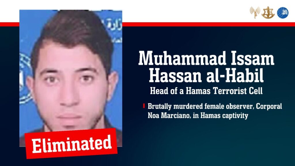 Israeli military officials announced that an airstrike in Gaza City on Wednesday killed a senior Hamas terrorist accused of murdering captive soldier Noa Marciano hy”d, when she was being held hostage in late 2023.