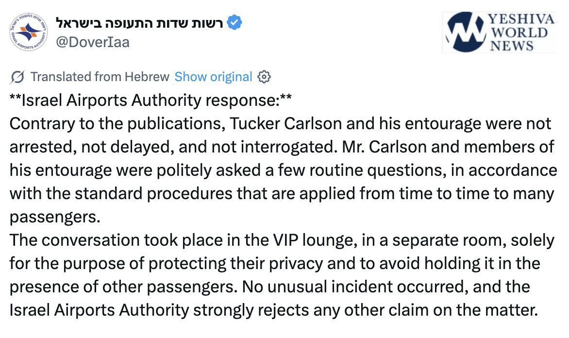 “It is not accurate that Israel only was going to let Tucker into the country for the interview,” an embassy spokesperson said. “Tucker received the same positive treatment of any visitors to Israel.”