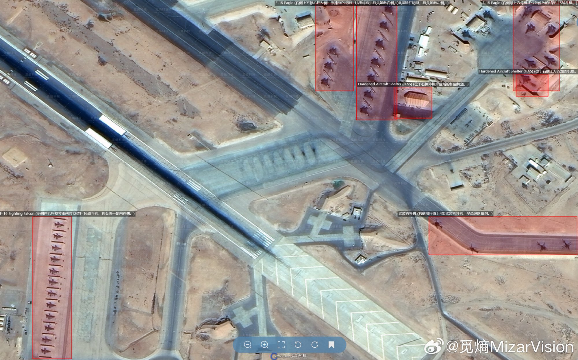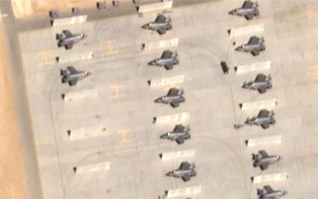 The images reportedly show advanced aircraft, including F-35 stealth fighter jets, along with drones and helicopters. Additional fighter jets may be parked under reinforced shelters.
