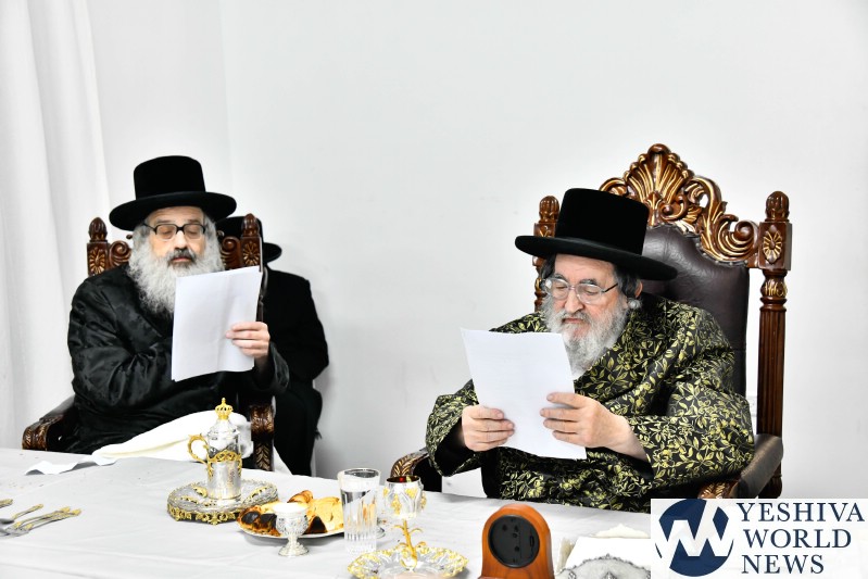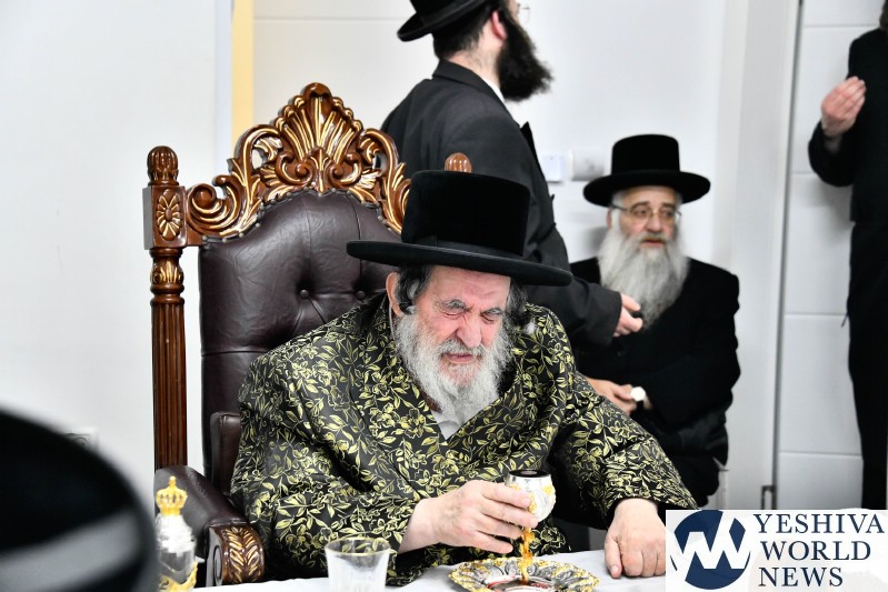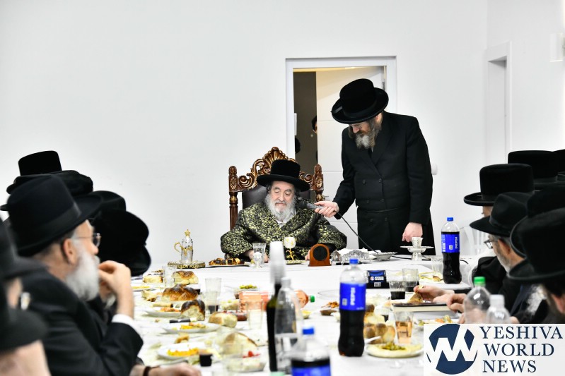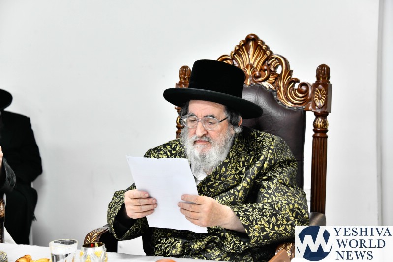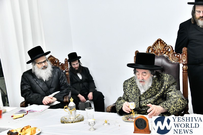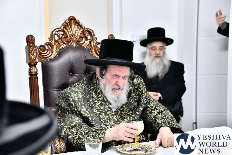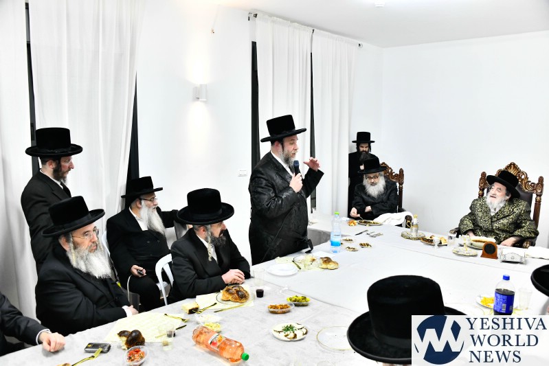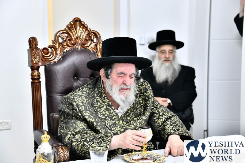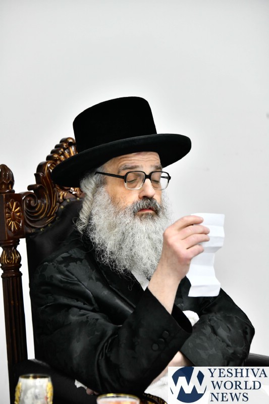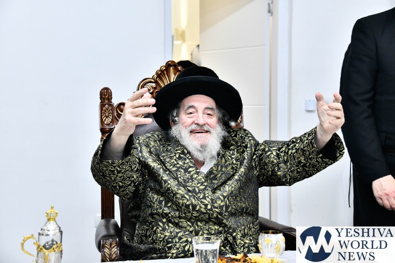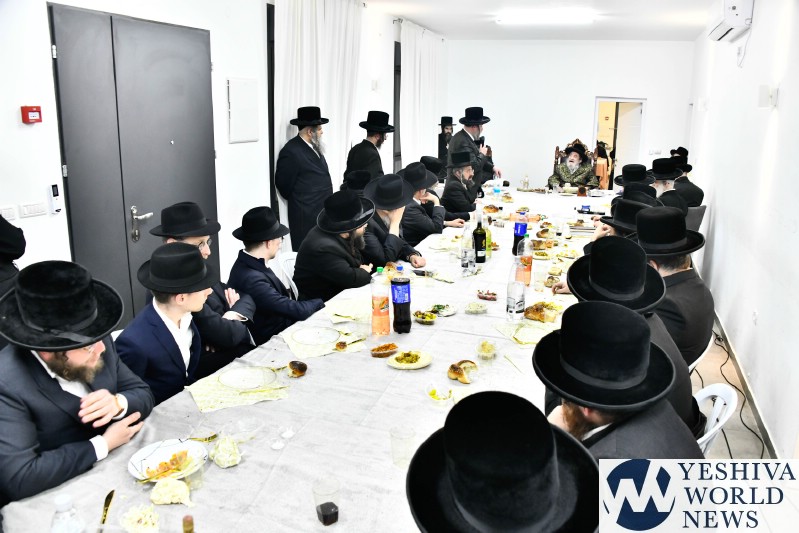 The evening was combined with a fundraising event benefiting Kimcha D’Pischa for the Vizhnitz kehillah in Elad, with prominent supporters of the chassidus seated around the Rebbe’s table after contributing substantial sums to assist families ahead of Pesach.