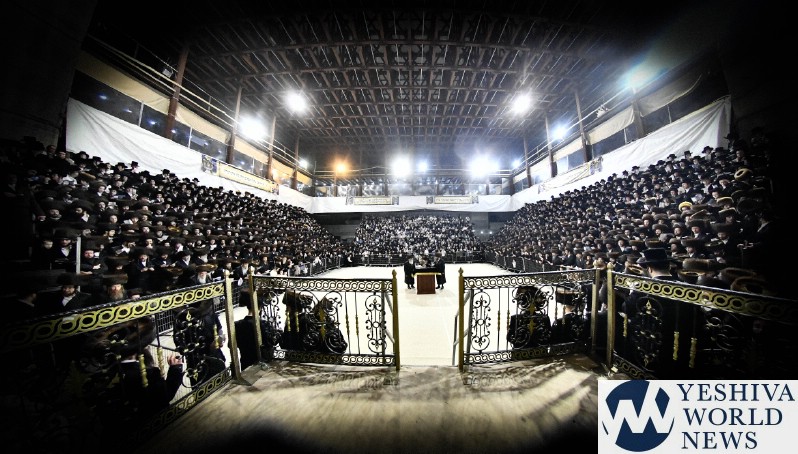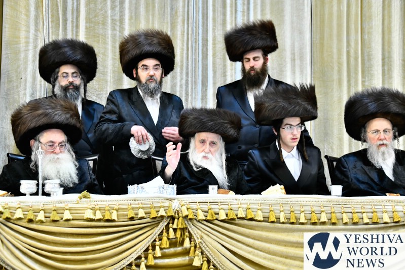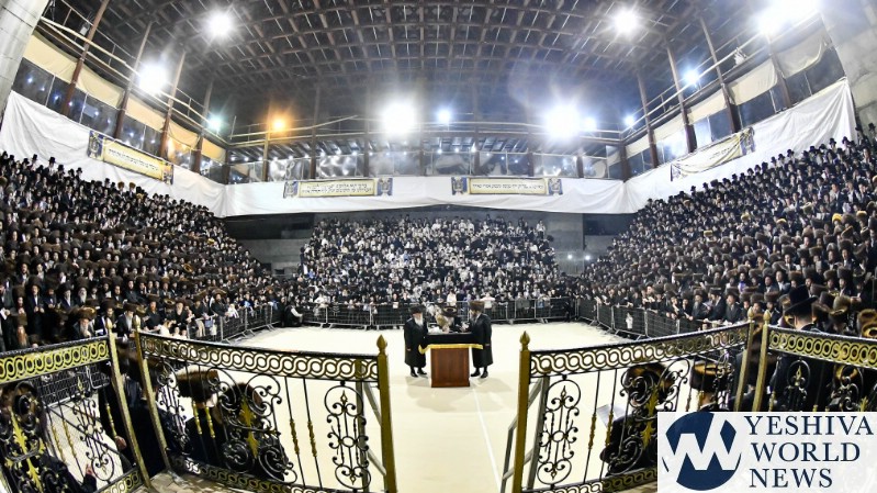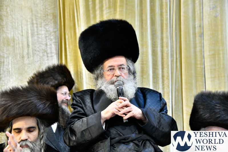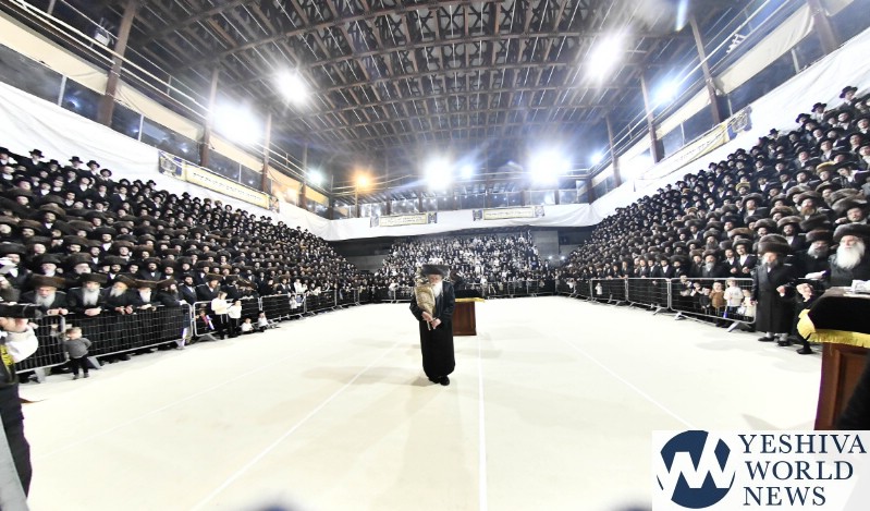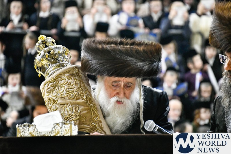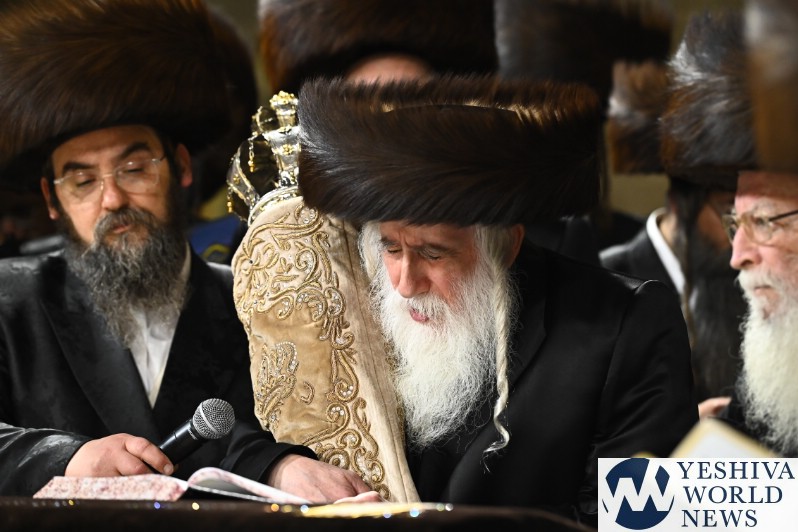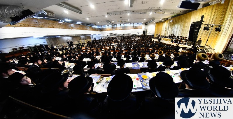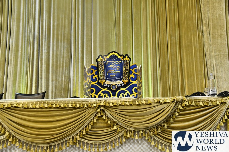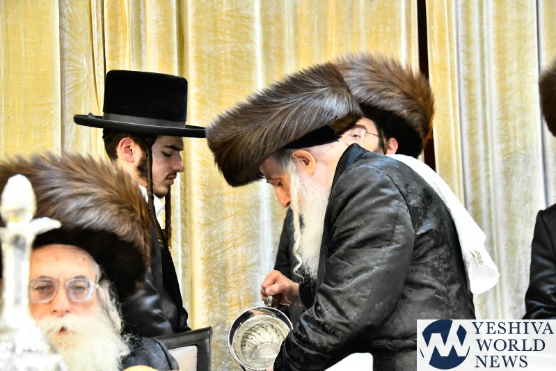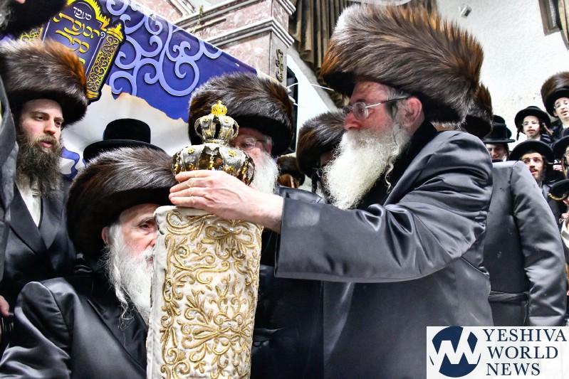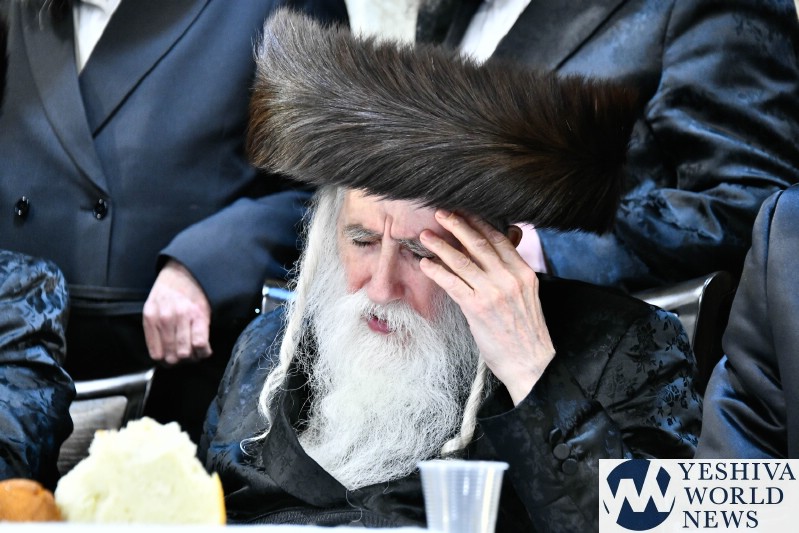 Following the placement of the Sefer Torah into the aron kodesh, the crowd proceeded to a festive seudas mitzvah, which was combined with the central Sheva Brachos celebration for the Rebbe’s grandson.