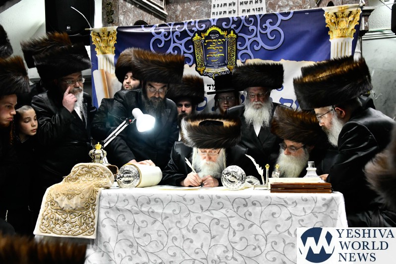 The beautifully written Sefer Torah was commissioned and funded collectively by the entire kehillah — elders and youth alike — as a spiritual gift in honor and merit of their Rebbe, the Machnovka Belzer Rebbe.