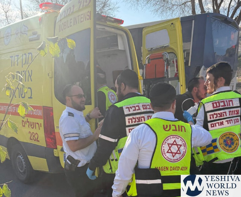 Hatzolah volunteers and MDA teams provided immediate medical treatment. He was transported in serious condition by an MDA intensive care ambulance to a Jerusalem hospital for further treatment in the trauma unit.