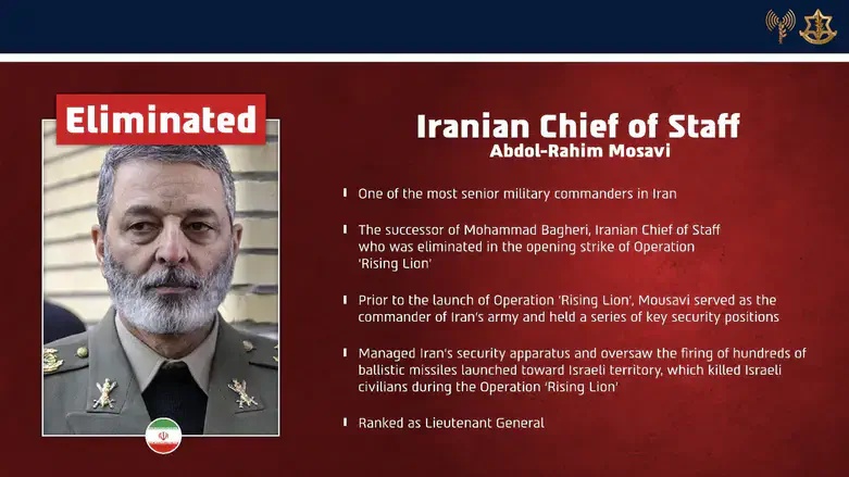 Defrin also confirmed that one of the military commanders who was eliminated was Abdolrahim Mousavi, who served as Chief of Staff of Iran’s armed forces.