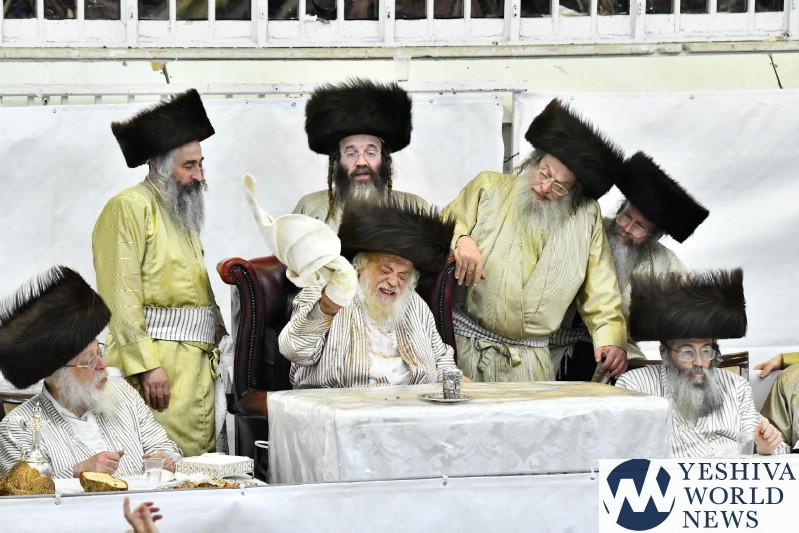 According to reports, the unusual cane was given to the Rebbe on Erev Purim and is believed to have belonged to one of the great tzaddikim of earlier generations. The Rebbe held onto the cane throughout Purim, dancing with it and using it while encouraging the thousands of chassidim gathered at the tisch.