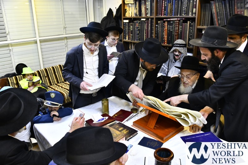 Scenes from Purim night and day were recorded by Shuki Lerer for YWN in the presence of Rosh Yeshiva HaGaon HaRav Meir Tzvi Bergman, as he fulfilled the mitzvos hayom, received visitors at his home, and sent a kvittel to the Belzer Rebbe.