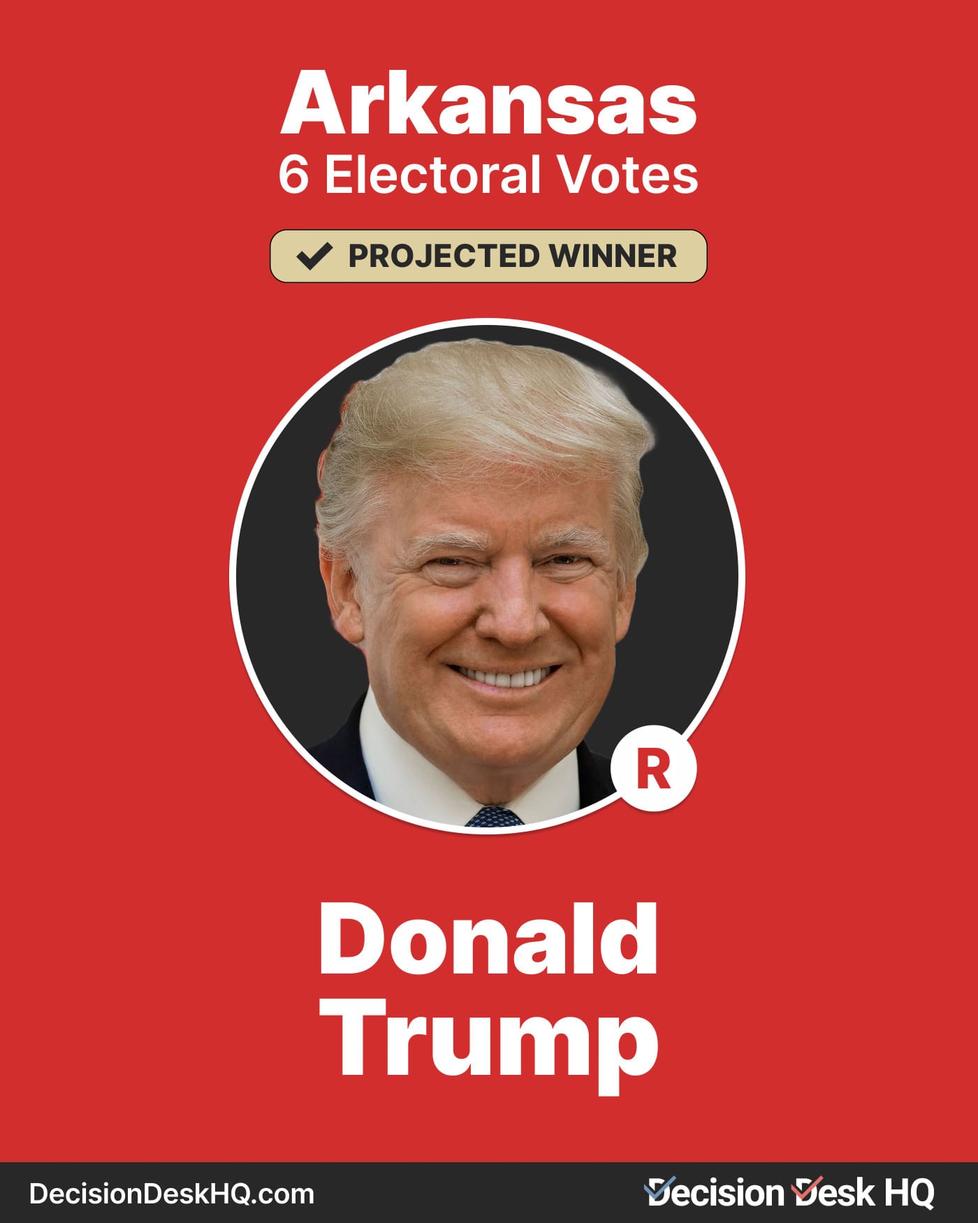 Donald Trump Wins Arkansas’ 6 Electoral Votes [TRUMP 111 Harris 72]