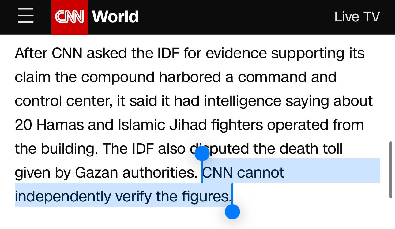 Guess how many paragraphs until CNN admits that it cannot independently verify the figures?