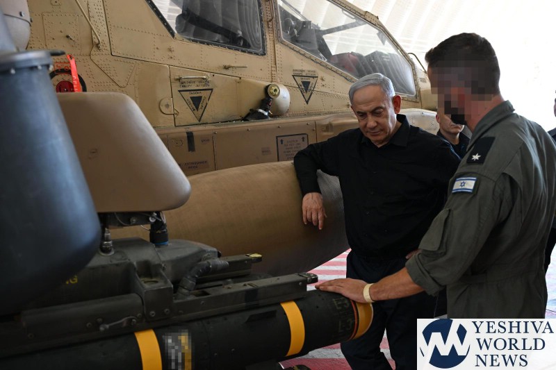 Prime Minister Netanyahu viewed an exhibition of combat systems at the base, including attack helicopter and jets. He was also shown the offensive capabilities of the various systems as well as their importance in carrying out the Air Force’s many defensive and offensive missions against both near and distant threats.
