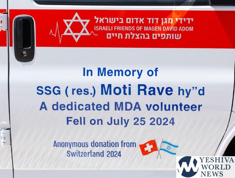 IDF soldier and MDA trainee-volunteer, Staff Sergeant (Res.) Moti Rave, 37, fell in combat in Rafah on July 25, 2024, during an operational activity in the sector. The day after his death, before news of his death was released for publication, a ceremony was held for the completion of Stage 1 of MDA’s paramedic course, during which Moti was supposed to receive his certificate. During the ceremony, MDA received a request to send an ambulance to deliver the sad news to his family. MDA staff were dispatched immediately, and only later did his course mates and MDA teams in the South Hebron Hills realize they were going to his home and that Moti had fallen in battle. At the ambulance dedication ceremony, Moti’s family received his EMT course completion certificate.