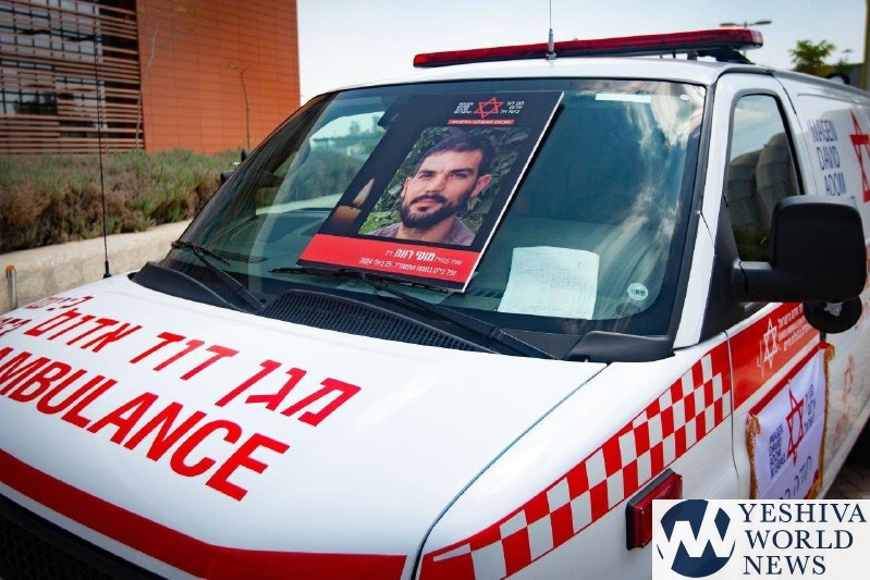 MDA volunteer Dolev Yehoud, 35, from Kibbutz Nir Oz, volunteered with MDA as an EMT in the Ofakim sector. On the morning of October 7, when the terrorist attack began and terrorists infiltrated the kibbutz, he left his family in the safe room to help and save lives under fire, and never returned. On June 3, 2024, it was reported that he was murdered on that fateful Sabbath, and his body was found in the kibbutz area after a complex identification process. On the ambulance bearing Dolev’s name, a photo of his sister Arbel, who was kidnapped and is still held by Hamas, was affixed.