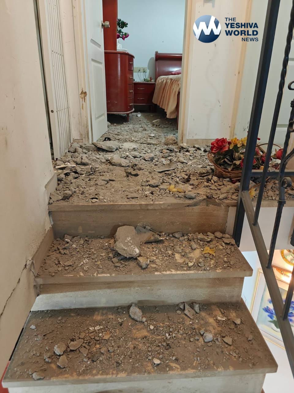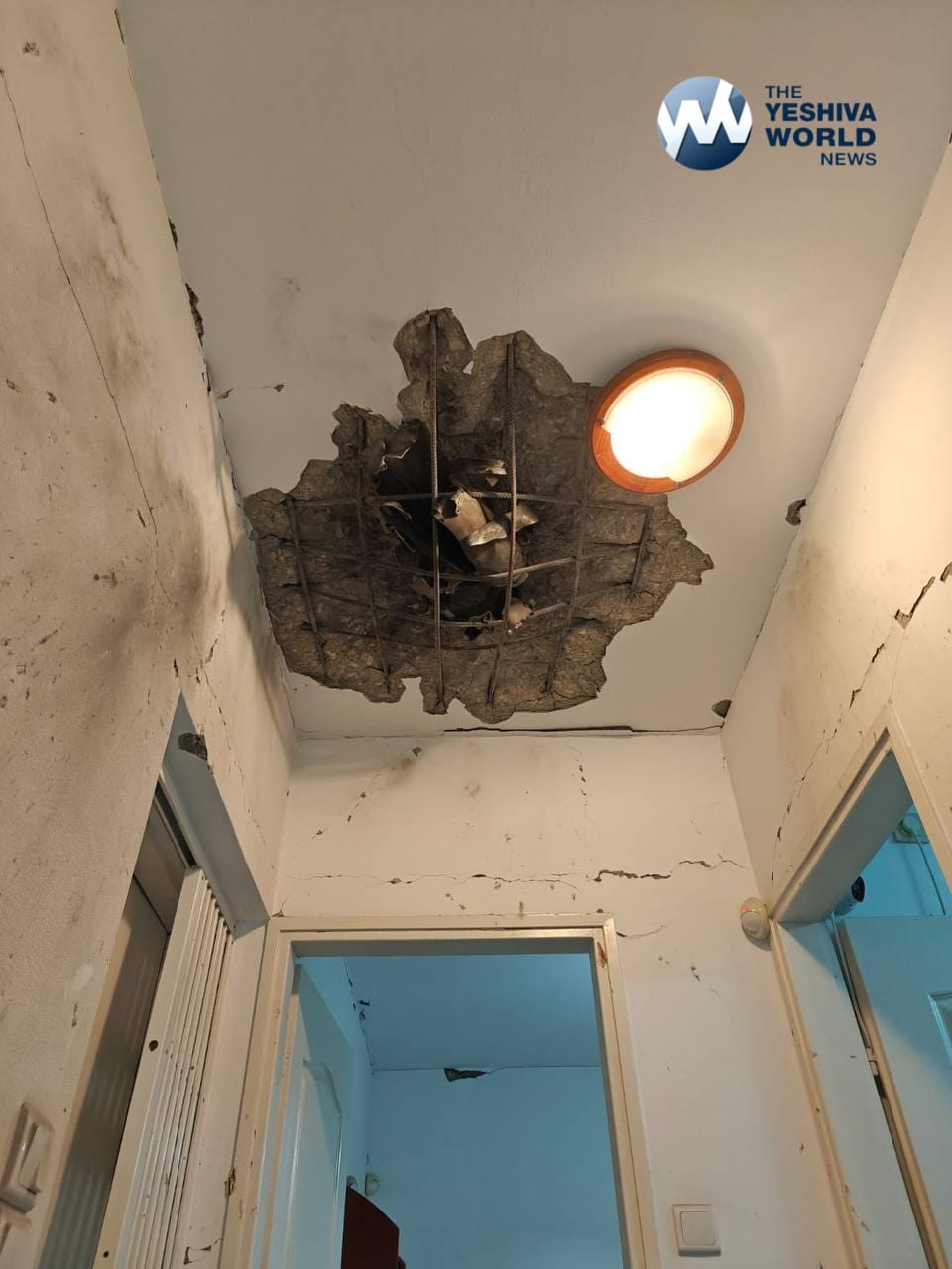 Damage to the roof of a building in Kiryat Motzkin, Northern Israel, following the latest Hezbollah rocket barrage.