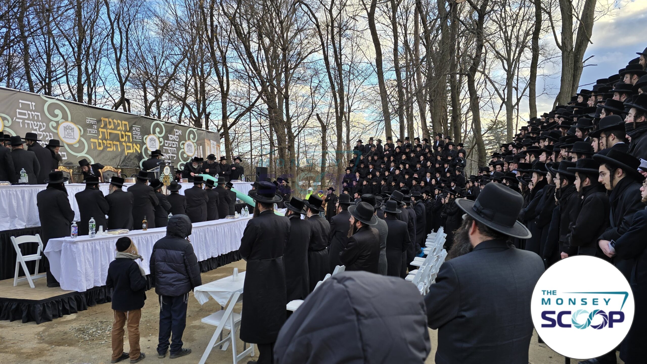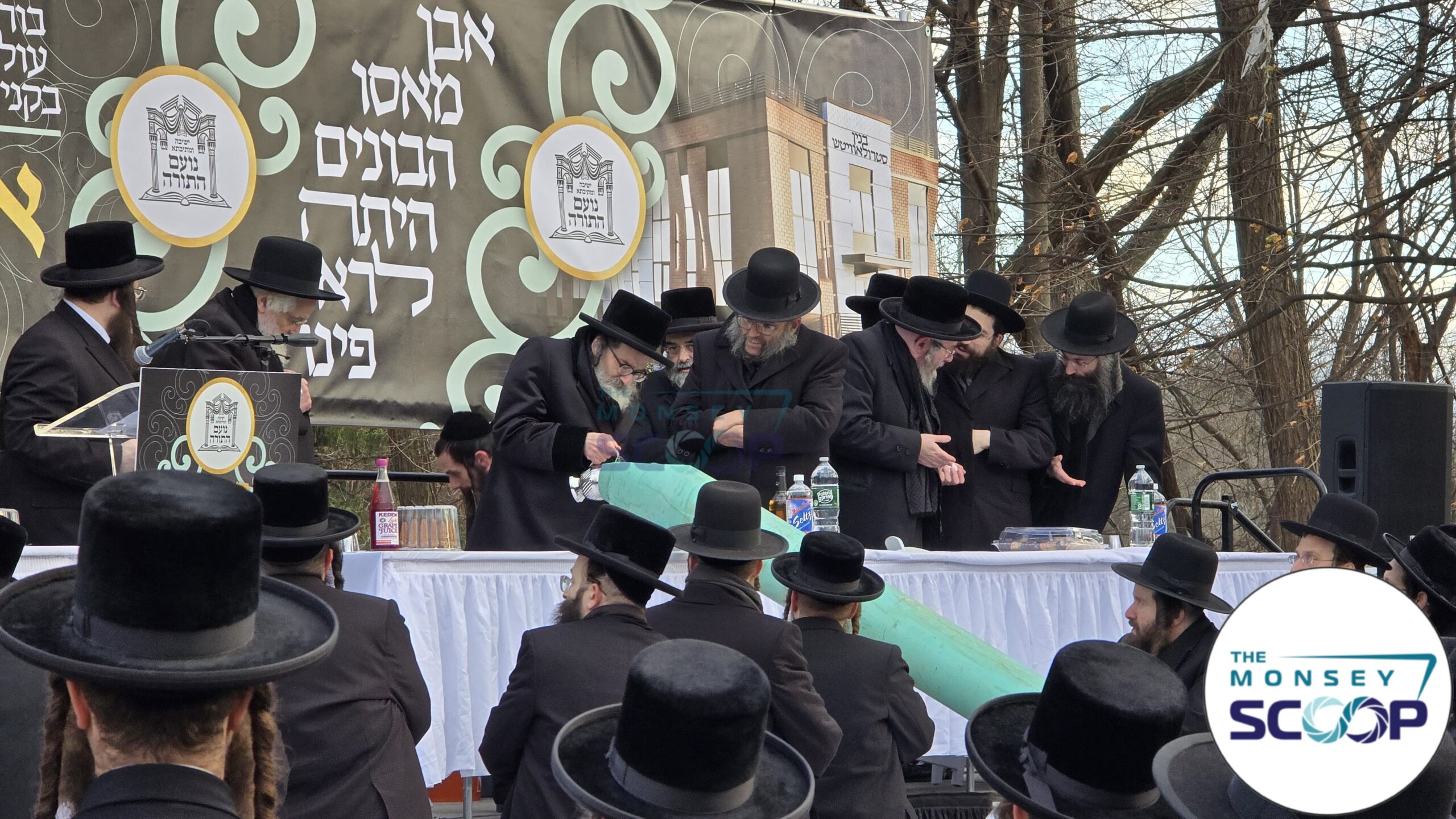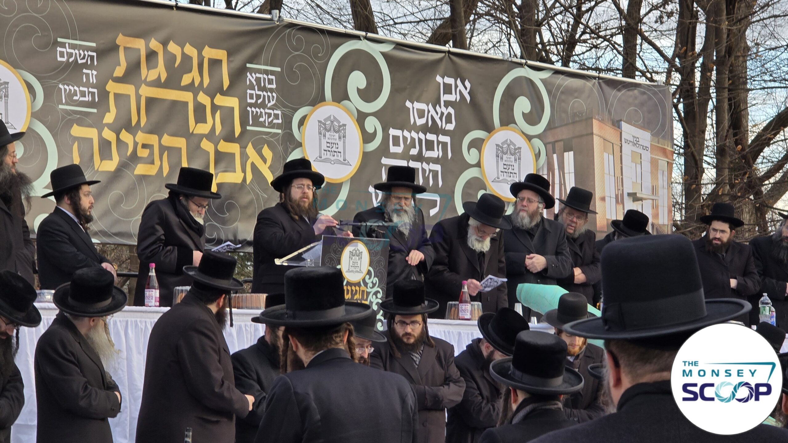 Prominent Monsey Rabbonim attended the cornerstone-laying ceremony for Yeshivas Noam Hatorah on South Main Street. The event featured a program by YF Productions.
