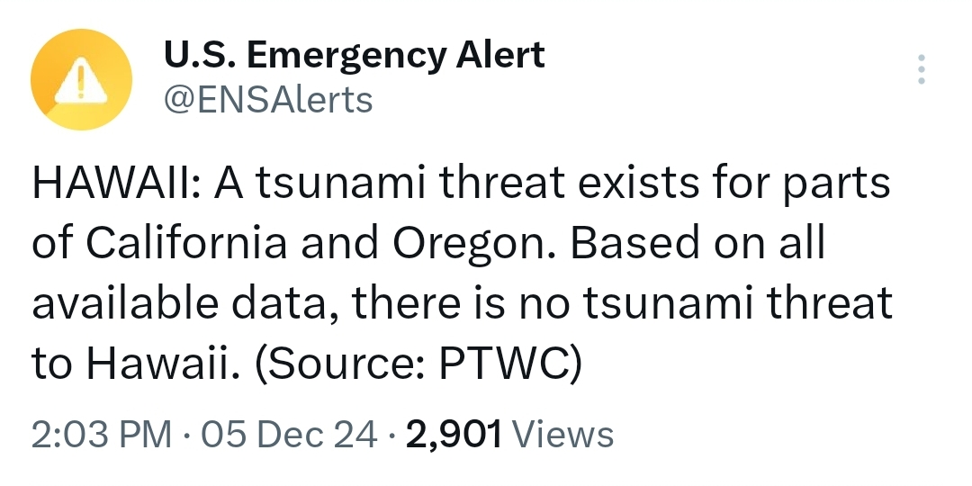 Tsunami Warning Issued For Northern California After 7.3 Magnitude Earthquake