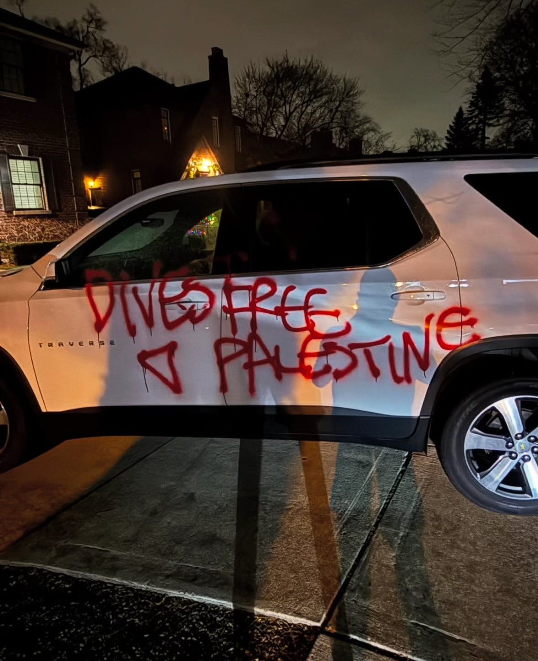 Overnight, a Free Palestine mob vandalized the car and home of Jewish University of Michigan Regent Jordan Acker – the third attack he’s experienced since Oct. 7.