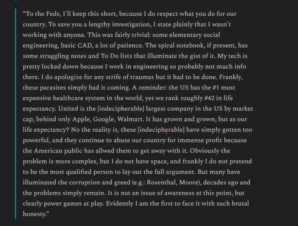 The alleged handwritten manifesto from the suspect in the assassination-style shooting of UnitedHealthcare CEO Brian Thompson has been obtained