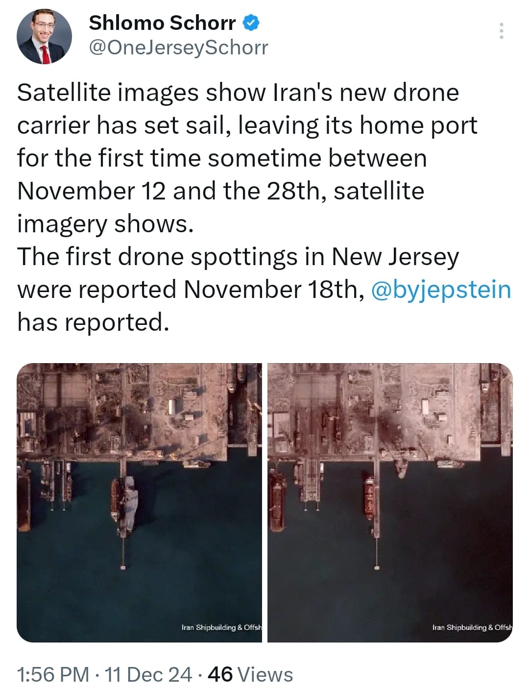For more on this story, including Rep. Jeff Van-Drew’s assertion from “highly credible sources” that drones seen over New Jersey and nearby states for the past several weeks are being sent by Iran, click here.