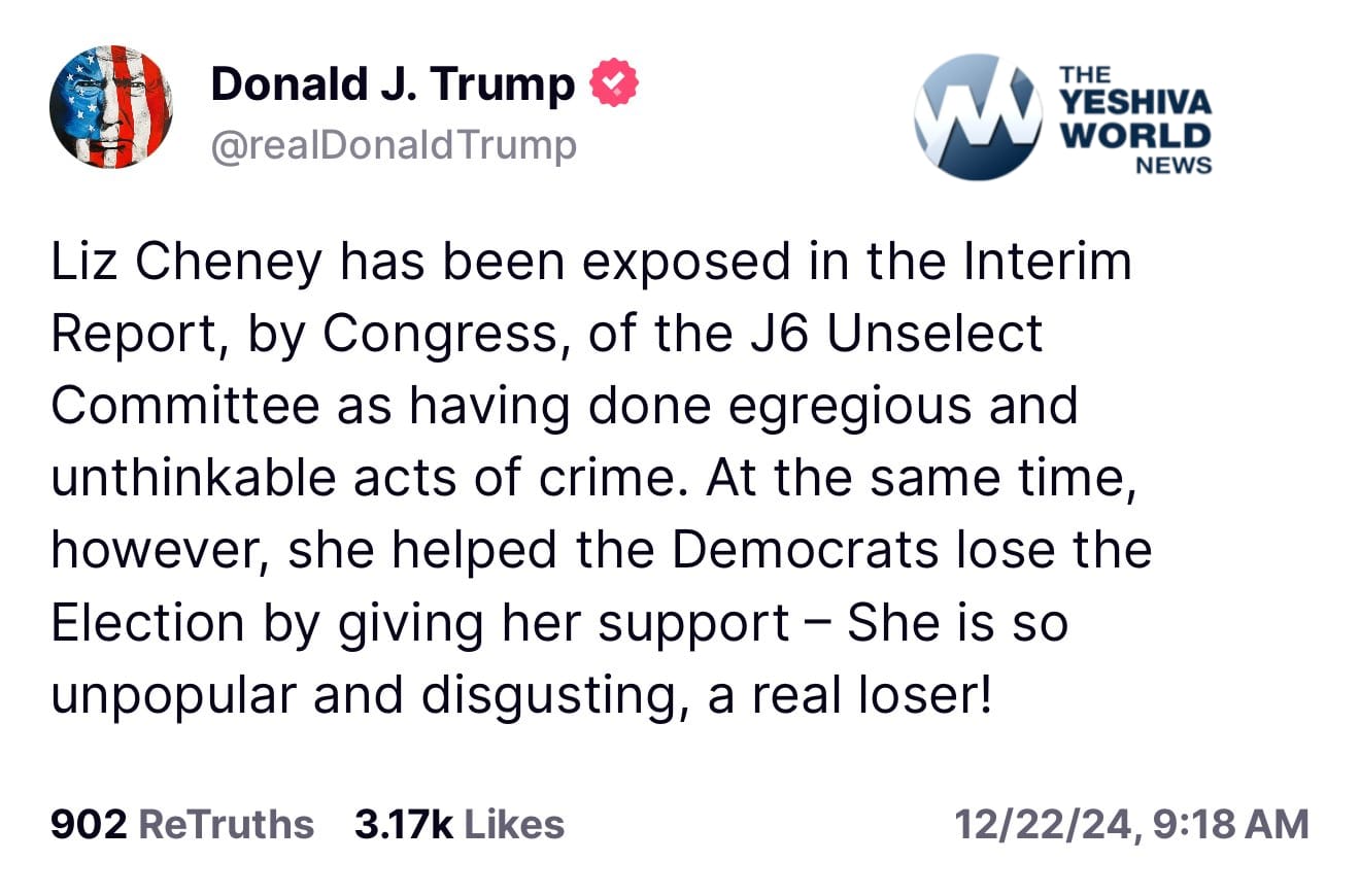 President Trump just called out Liz Cheney for her “egregious and unthinkable acts of crime” that she’s done while on the J6 Unselect Committee.