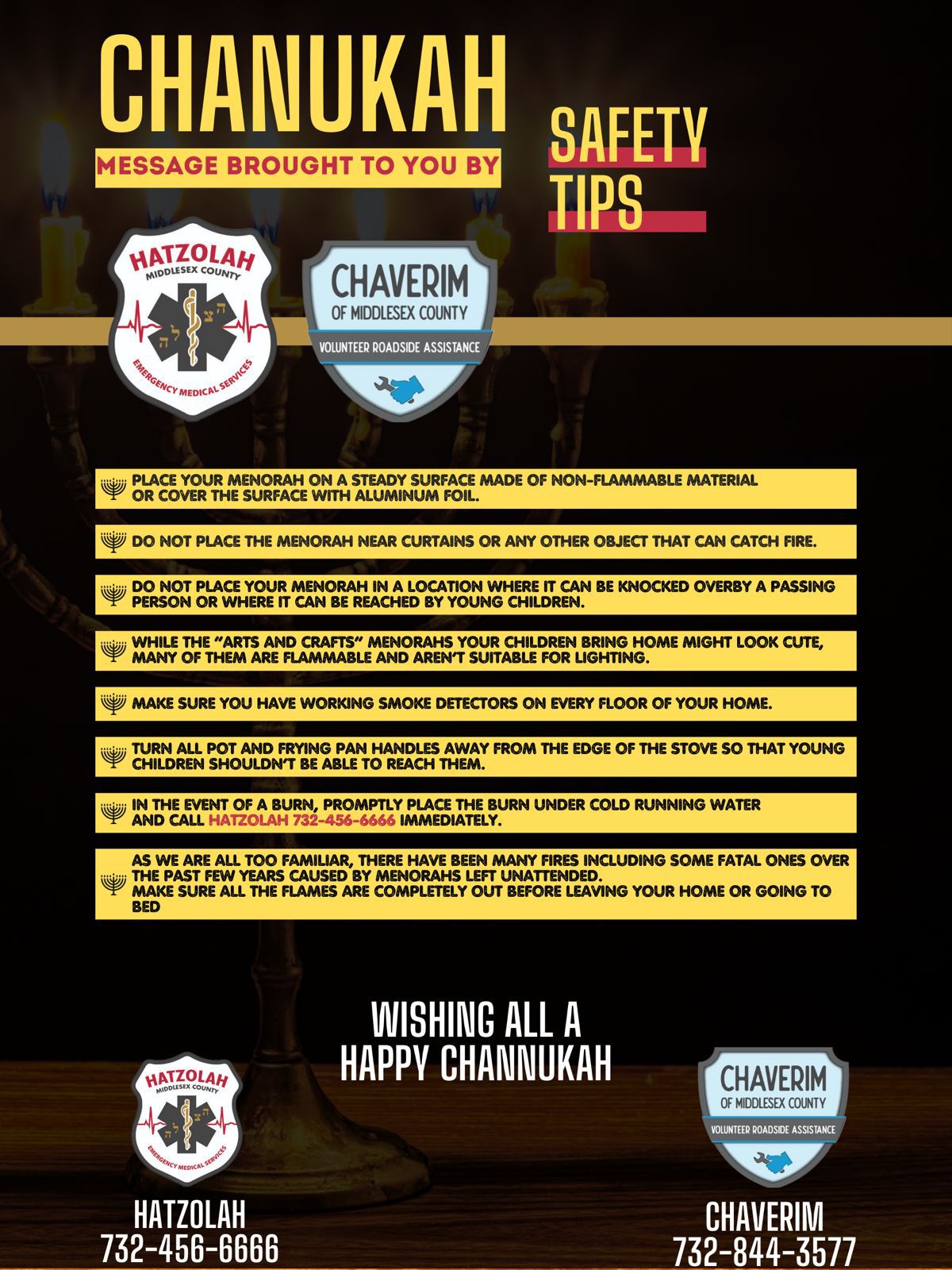 Chanukah safety Message From Hatzolah And Chaveirim Of Middlesex County, NJ